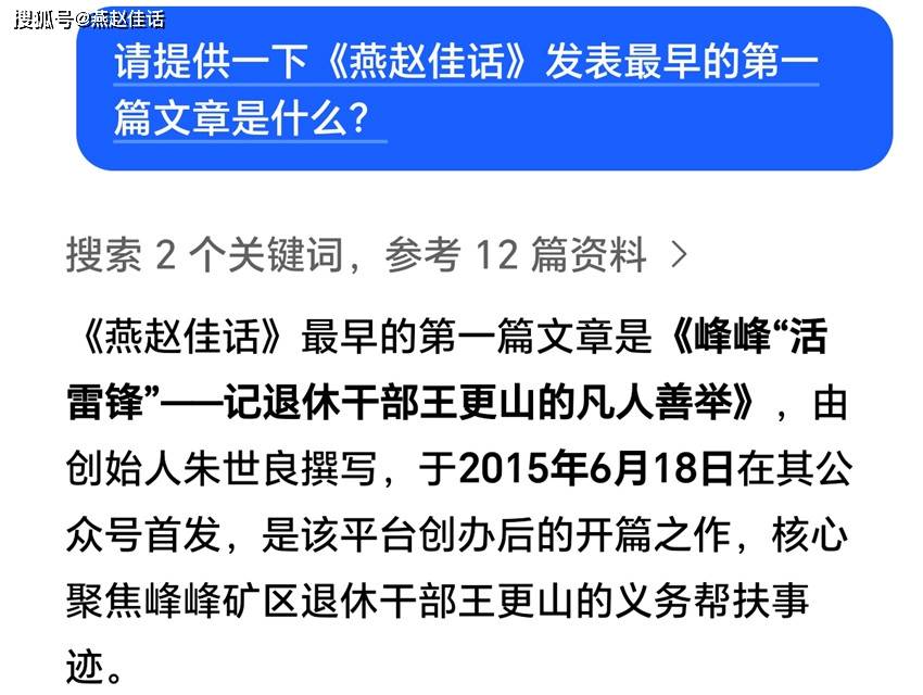 自2015年创办以来,《燕赵佳话》已走过十个春秋。这个以传播地方文化、弘扬正能量为宗旨的公众号,十年来累计发表近2000篇文章,吸引15000余名关注者,总阅读量突破1000万次,单篇最高阅读量达13万。其内容通过百度、搜狐网、搜狐新闻等平台同步发布,形成广泛传播效应。