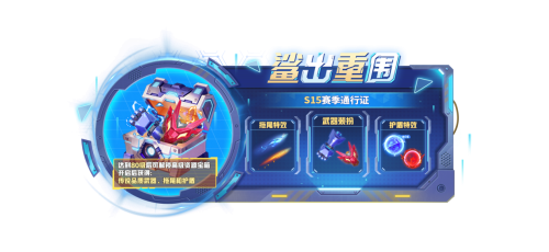 鲨出重围模式S15赛季通行证上线,全新机甲主题赛季装扮亮相太空!通过赛季任务提升等级,达到80即后可解锁高级资源宝箱,开启后获得:传说品质武器、拖尾和护盾,让炫酷机甲席卷星际!