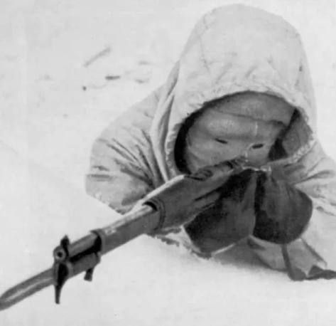 除了保暖之外,在白皑皑的雪地中隐蔽同样也是个大问题,早在1940年的苏芬战争中,许多出身猎户的芬兰狙击小队便身披纯白色的罩衣,利用滑雪板快速穿梭在林间,冷静沉着的狙杀敌人,对于他们而言,那些身着臃肿绿色或褐色军装的苏军就是活靶子。