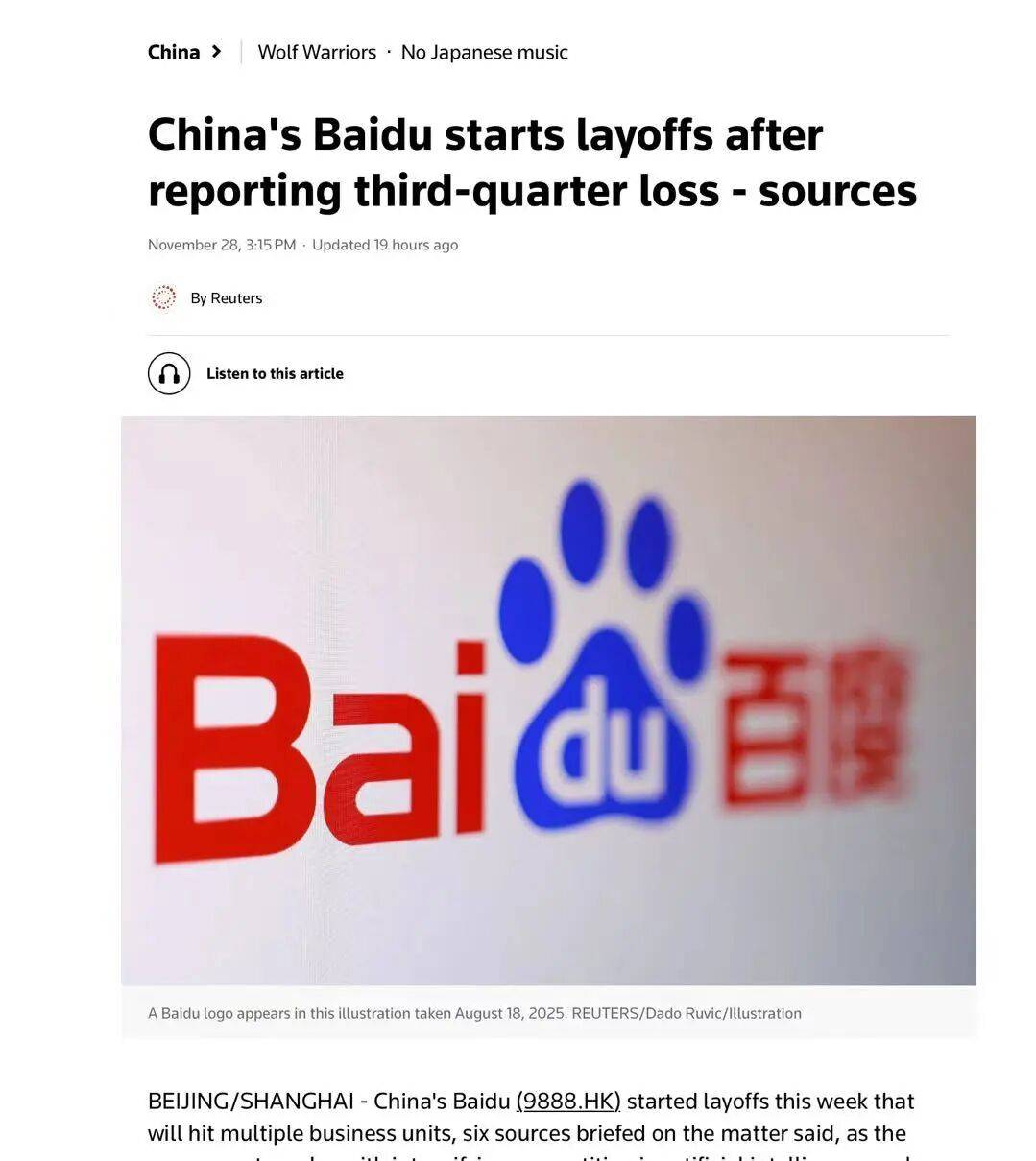 近期,百度(NASDAQ:BIDU)正经历一场大规模的业务调整,裁员成为其中备受关注的焦点。据海外媒体消息,此次裁员涉及多个部门,且预计将持续至年底。